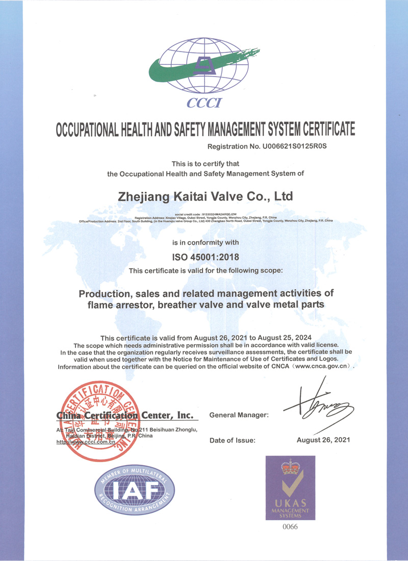 职业健康安全管理体系认证证书